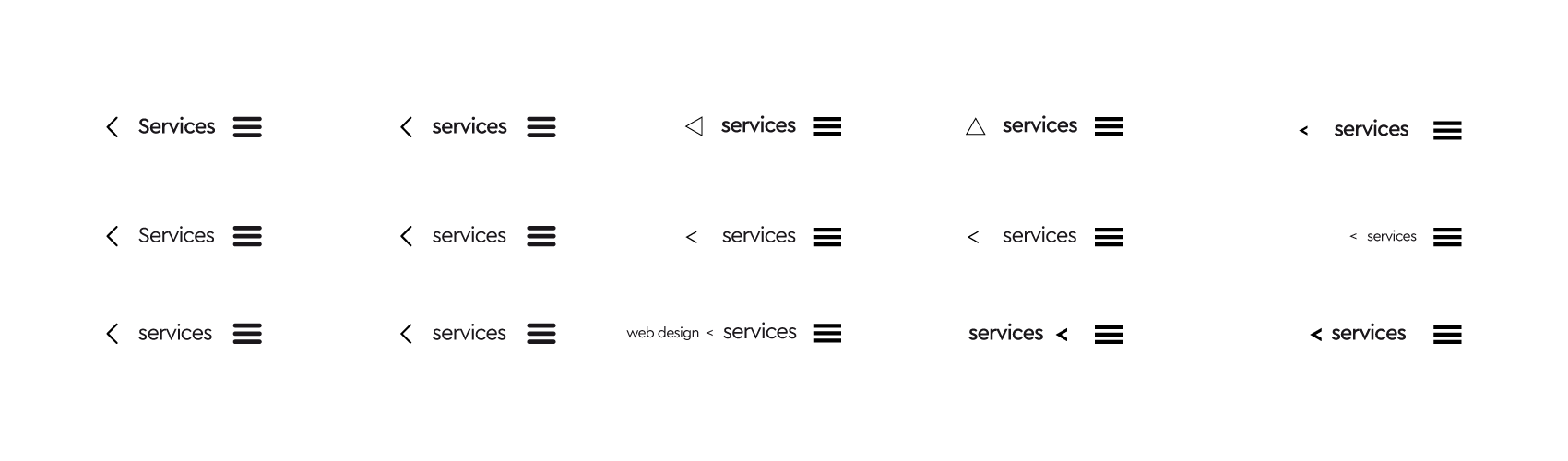 A simple word displaying the parent page was chosen as the breadcrumb. This breadcrumb would also have a secondary function as a link button to the parent page, to save the user opening the menu.