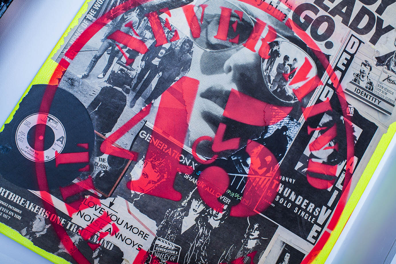 The latest show in the Bozboz Gallery, ‘Never Mind the Punk 45’ opened this week. The mixed media show features decollages from the forerunners of the punk rock movement’s debut 45 releases.